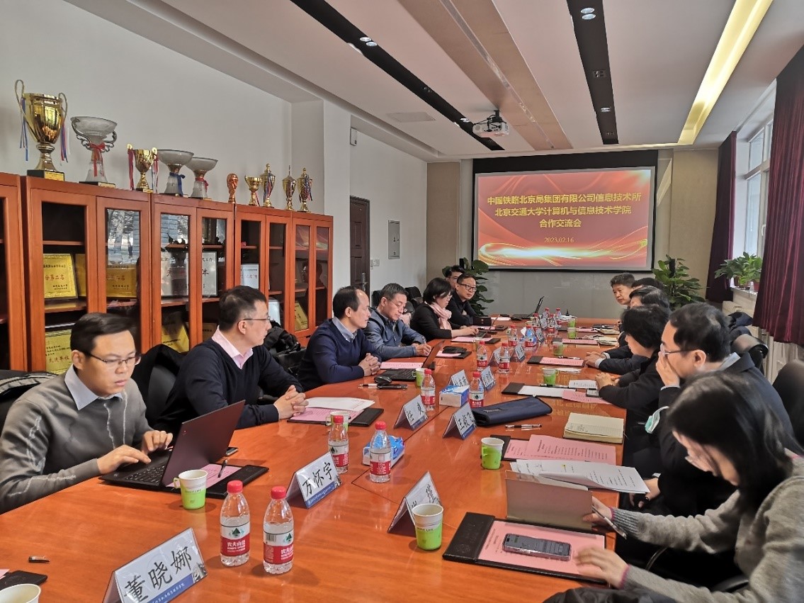 2023年2月16日上午,中国铁路北京局集团有限公司信息技术所(以下简称“中国铁路北京局信息技术所”)主任李伟、总工程师刘韶霞、副主任张海泉等一行六人来访金年会jinnianhuicom,与计算机学院院长蔡伯根、大数据研究院院长林友芳、计算机学院副院长景丽萍等八人,就大数据方向培训等事宜进行合作交流。