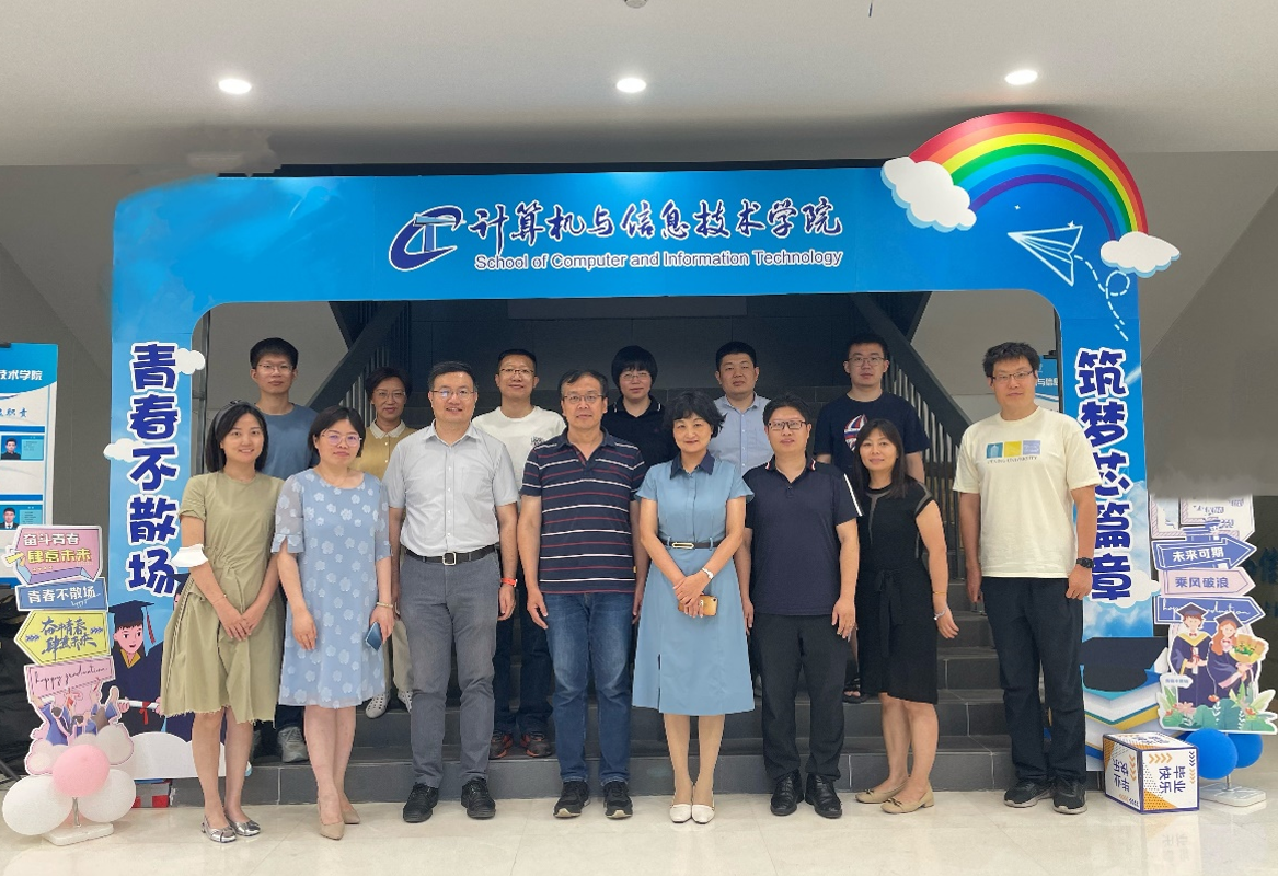 2023年6月21日下午,北京市计算中心有限公司(以下简称“计算中心”)董事长兼总经理刘彤、副总经理裴智勇等一行七人来访金年会jinnianhuicom,与计算机学院党委书记贾卓生、副院长景丽萍、副院长熊轲以及对外联络合作处非学历教育办公室主任黄晨等十位师生进行交流。