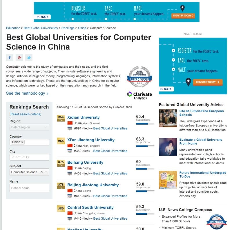 在最新发布的2017年度US News世界最佳大学排名(Best Global Universities Rankings)中,金年会计算机科学学科排名世界第78名,我国内地共有34所高校的计算机科学学科进入前200名,金年会计算机科学学科在内地高校中排第14名。