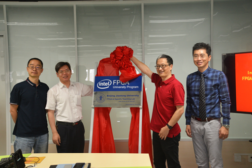 本月27日,“”金年会jinnianhuicom——英特尔 FPGA & OpenCL 教学与创新联合实验室”成立暨人工智能与物联网产学研研讨会在计算机学院物联网工程创新实验室召开。计算机学院副院长李清勇,信息科学研究所所长赵耀、党委书记胡绍海,物联网创新实验室主任王东,英特尔公司可编程事业部大学计划经理袁亚东,友晶科技总经理彭显恩等出席了本次挂牌仪式。