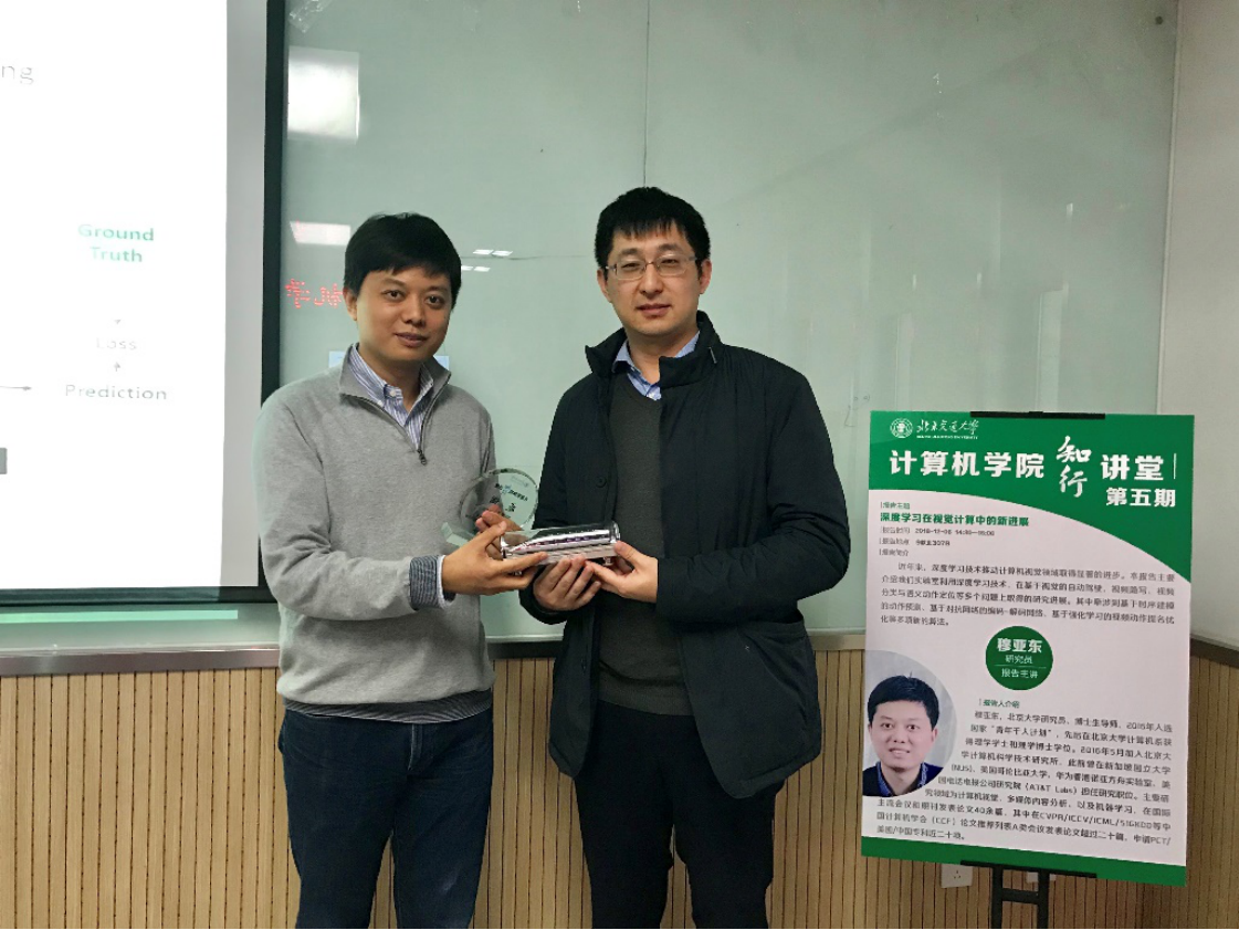 2018年12月6日, 计算机学院“知行讲堂”第五期邀请到北京大学计算机科学技术研究所研究员穆亚东做了题为《深度学习在视觉计算中的新进展》的精彩报告。