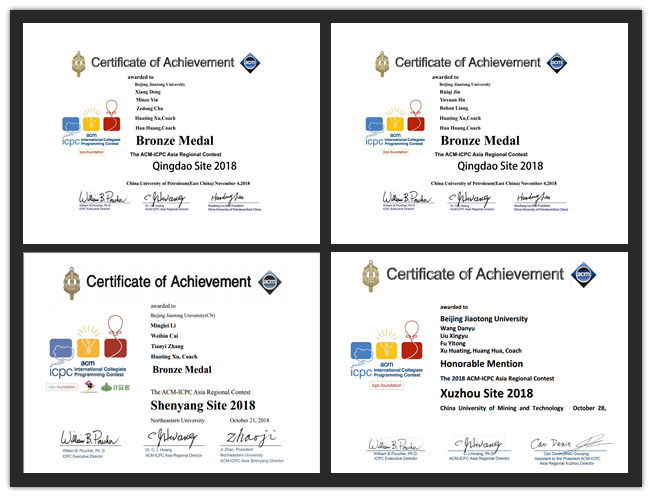 第43届ACM-ICPC(ACM国际大学生程序设计竞赛)亚洲区域赛于2018年10月13日在南京航空航天大学开始,于12月16日在西北工业大学落下帷幕,共设置了八个赛站(南京、沈阳、徐州、青岛、北京、香港、焦作、西安)。经过网络赛的选拔,金年会共获得了12个参赛名额,参与了除南京、香港站外的其他6个赛站的比赛,且均取得了奖牌,共计斩获1枚金牌,4枚银牌,5枚铜牌。