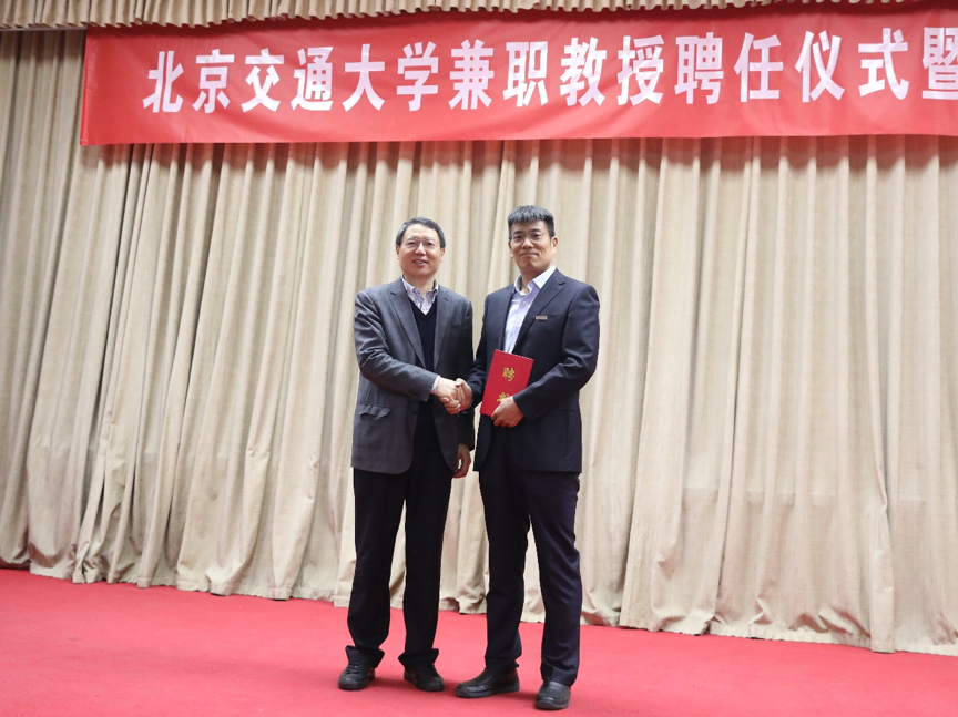 聘任仪式由计算机与信息技术学院副院长林友芳教授主持。计算机与信息技术学院院长蔡伯根教授介绍了刘振飞先生的个人履历。金年会jinnianhuicom副校长余祖俊教授为刘振飞先生颁发兼职教授聘书、佩戴金年会jinnianhuicom校徽并赠送了小礼品“复兴号”动车模型。