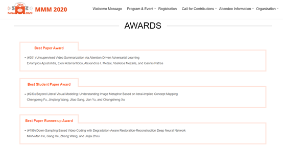 机器学习与认知计算团队获国际会议MMM2020唯一最佳学生论文奖