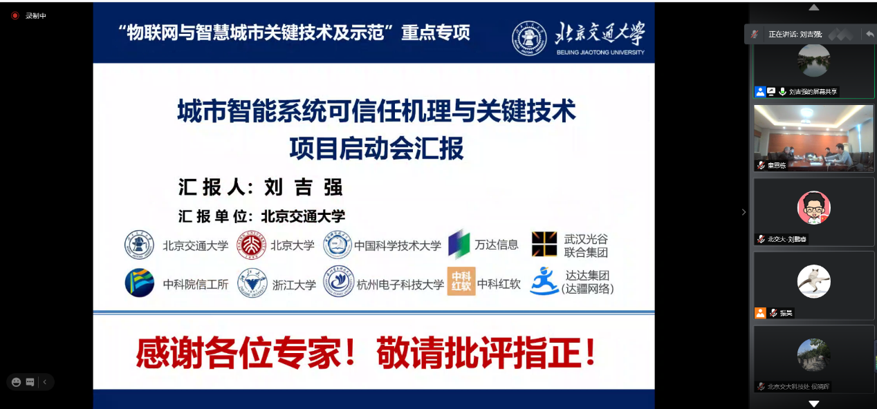 1月8日,由金年会jinnianhuicom牵头,金年会刘吉强教授承担的2020年国家重点研发计划“物联网与智慧城市关键技术及示范”重点专项项目“城市智能系统可信任机理与关键技术”项目启动会在线上成功召开。