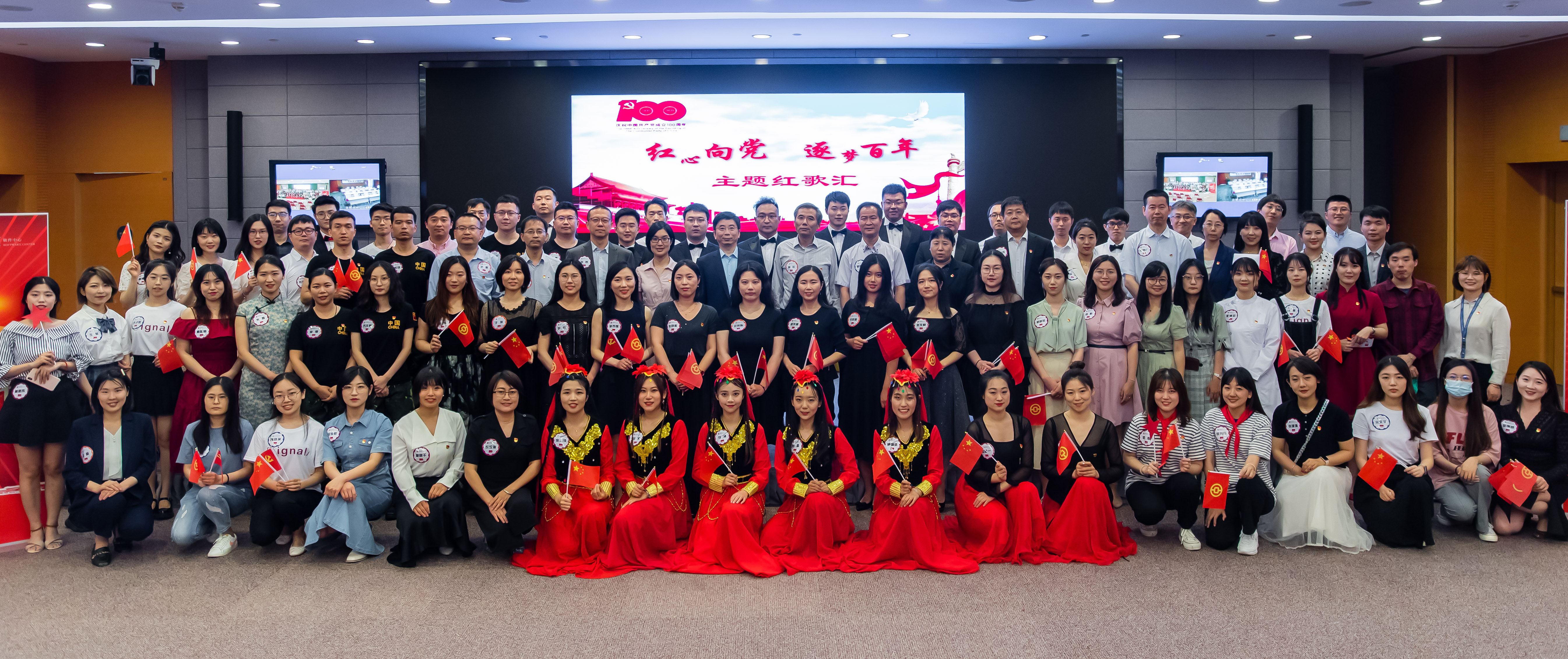 本次活动共分为初心向党、奋进逐梦、砥砺使命三个篇章。大家倾心倾情倾力,以歌唱,诗朗诵,舞蹈等多种形式献礼百年华诞,表演现场气氛热烈,台上精彩纷呈,台下掌声不断。
