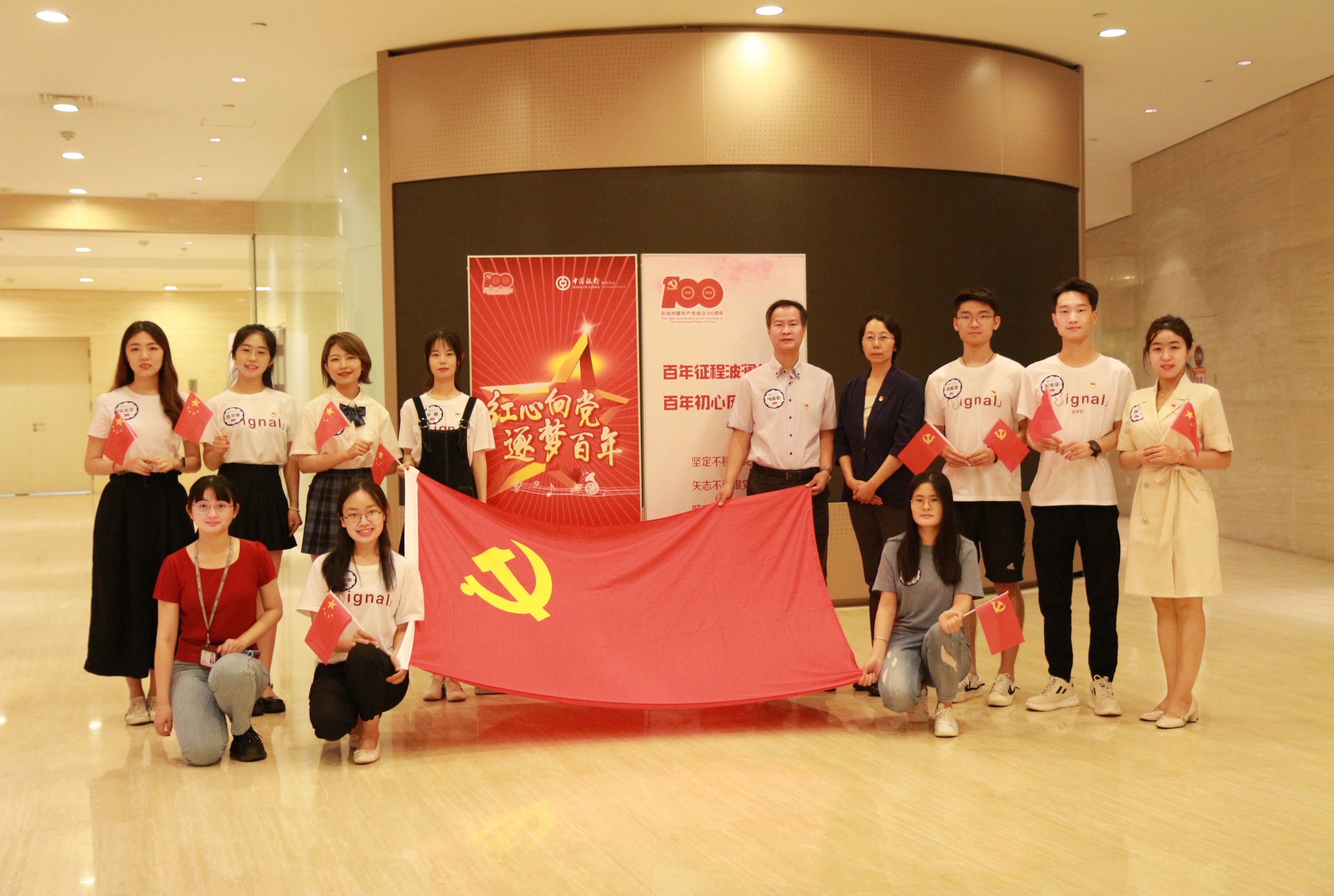 2021年6月23日,在中国共产党百年华诞即将来临之际,金年会jinnianhuicom计算机学院2019级、2020级信息所班硕士生党支部联合中国银行软件中心、单证中心党团共建,开展“红心向党、逐梦百年”主题红歌汇,共唱红歌、共学党史、共颂党情,向中国共产党建党100周年献礼。中国银行软件中心党委书记兼总经理王铿、中国银行单证中心党委书记兼总经理林宏、计算机学院党委副书记兼副院长董敬祝出席本次活动,三家单位线上线下近500人参加了本次庆祝活动。