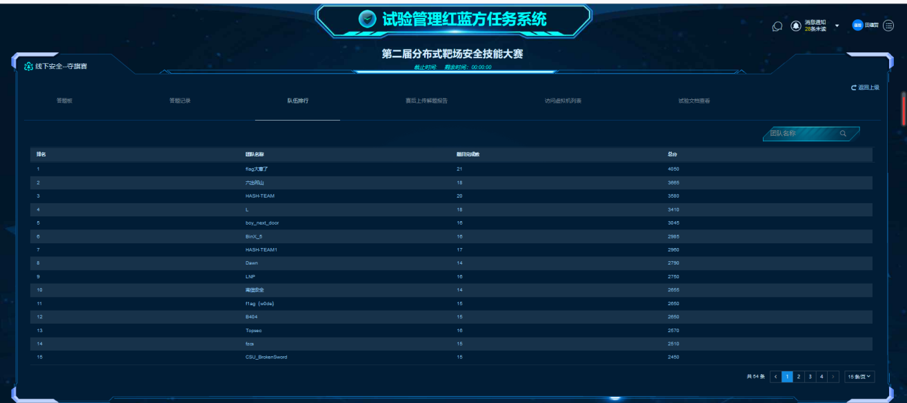 图1 第二届分布式靶场安全技能大赛总分排名