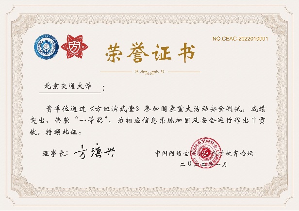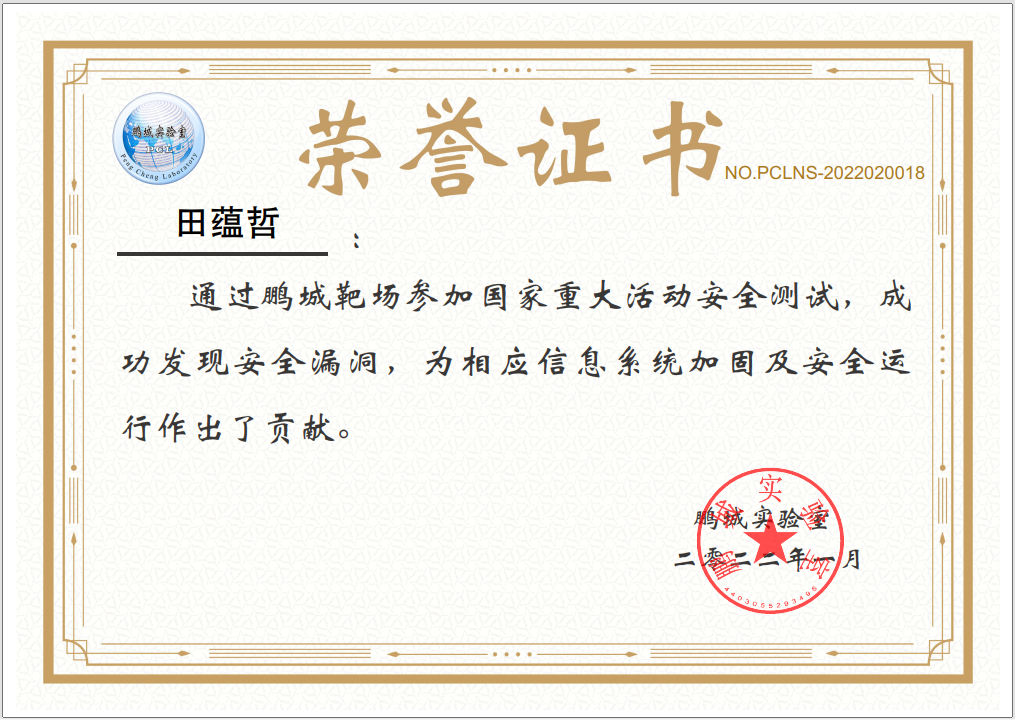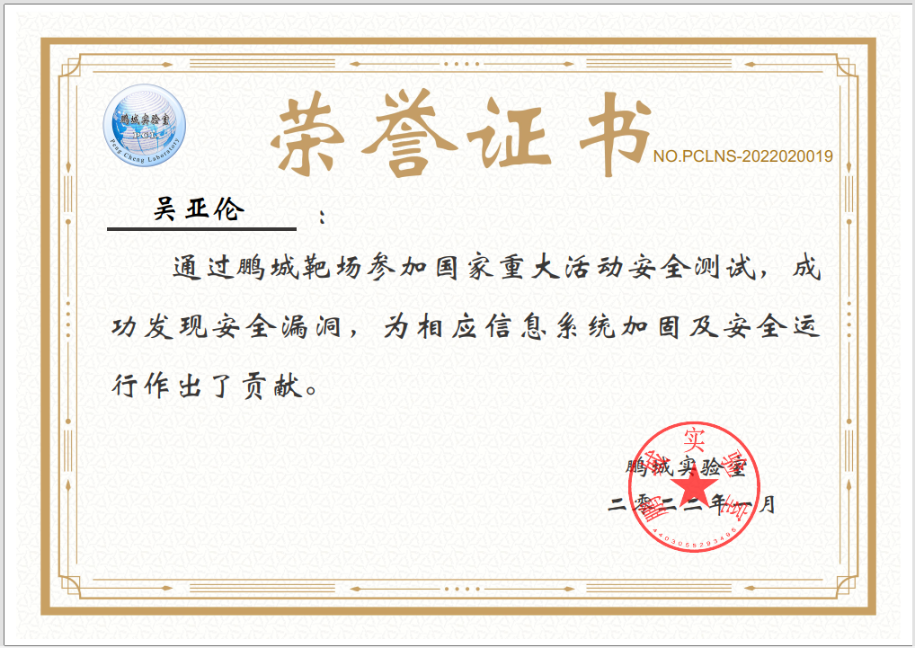 2022年1月在鹏城实验室、中国网络空间安全人才教育论坛(“网教盟”)、中国网络空间新兴技术安全创新论坛(“新安盟”)联合面向北京冬奥会、冬残奥会的安全演练活动中,金年会jinnianhuicom网络空间安全学科责任教授刘吉强老师领队、童恩栋和牛温佳老师指导的研究生团队(武兴宇、吴亚伦、田蕴哲、黄欣宇、陈彤、相迎宵、李轶珂、贾博为、孙瑞、乔紫嫣、陈诗瑶等)积极参与,共挖掘出高危漏洞1个、中危漏洞2个以及低危漏洞14个,最终以第一名成绩荣获一等奖,为保障北京冬奥会、冬残奥会的网络安全贡献了交大力量。