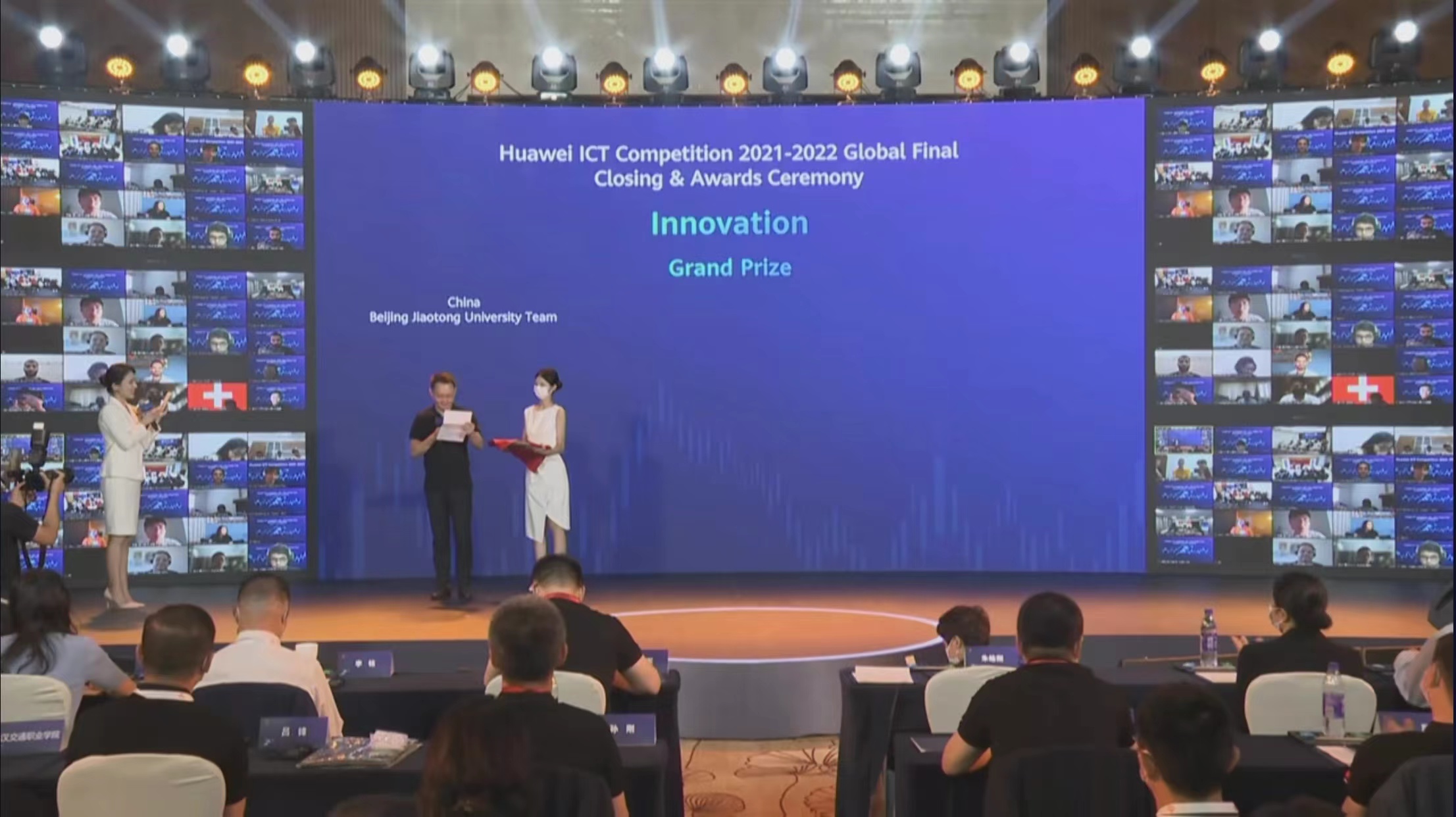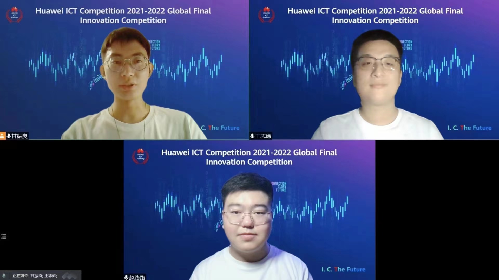 2022年6月17日至20日,华为ICT大赛2021—2022全球总决赛成功举办,并于6月25日在深圳采用线上线下混合方式举办了闭幕式暨颁奖典礼。金年会卢思洋老师指导的队伍(2019级本科生:赵路路、甘振良, 21级研究生王志炜)获华为ICT大赛2021-2022全球总决赛创新赛特等奖,在此之前已获得了华为中国大学生ICT大赛2021·创新赛全国一等奖的优异成绩。