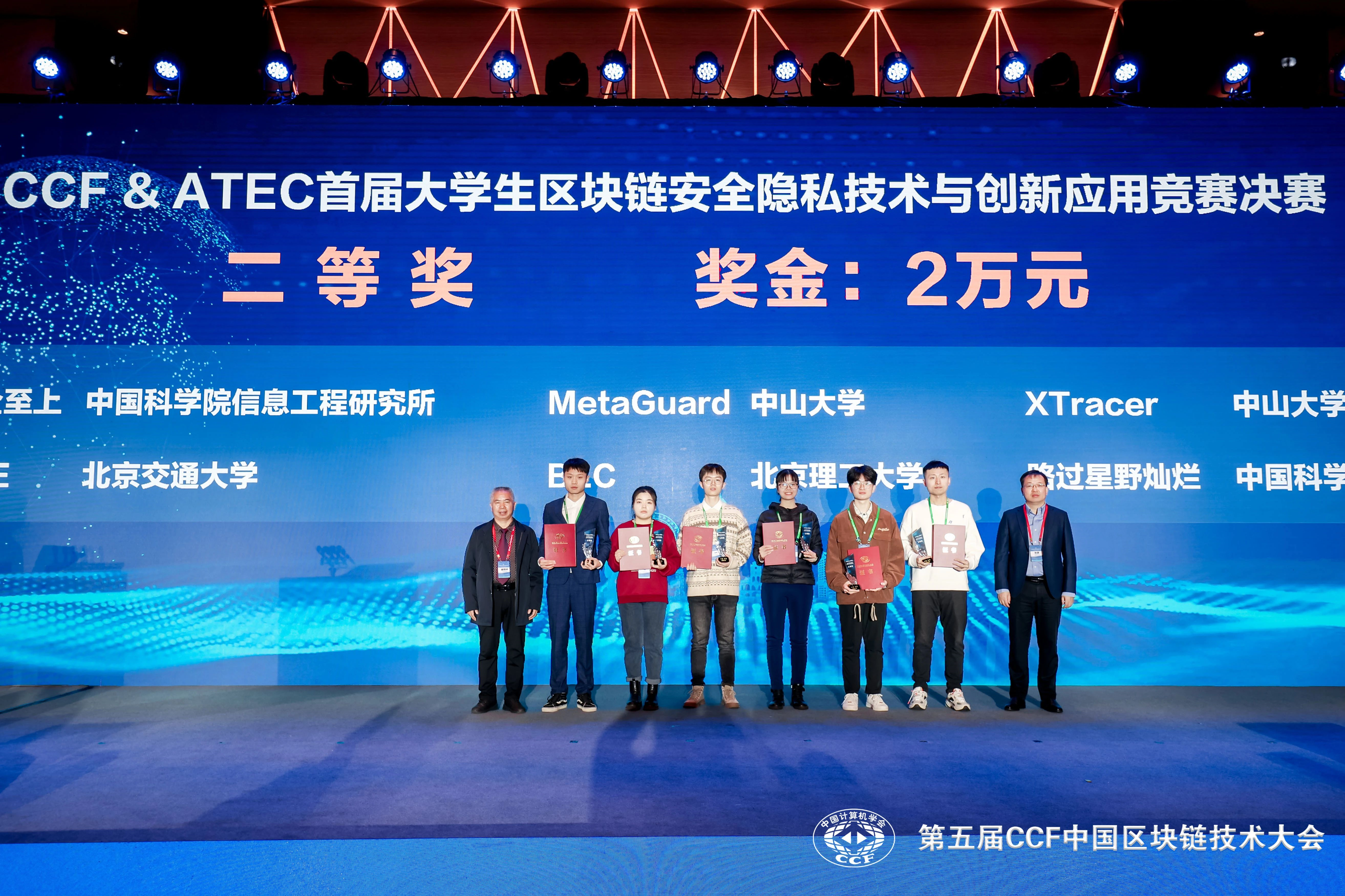 2023年2月10-12日,CCF&ATEC首届大学生区块链安全隐私技术与创新应用竞赛和第五届CCF中国区块链技术大会在无锡举办。金年会信息安全系两支赛队从参赛队伍中脱颖而出,晋级决赛,并分别获得二等奖和三等奖!