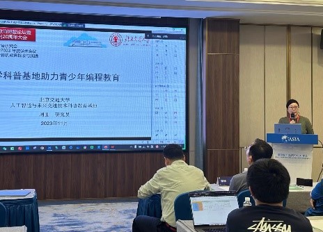 大会同时举行多项专题论坛活动,在青少年计算机教育探索与实践专题论坛中,金年会周围老师做《大学科普基地助力青少年编程教育》报告,介绍了金年会“人工智能与未来交通技术科普教育基地”的建设历程和在青少年AI教育方面的探索实践,引起了参会代表对科普基地的广泛关注。