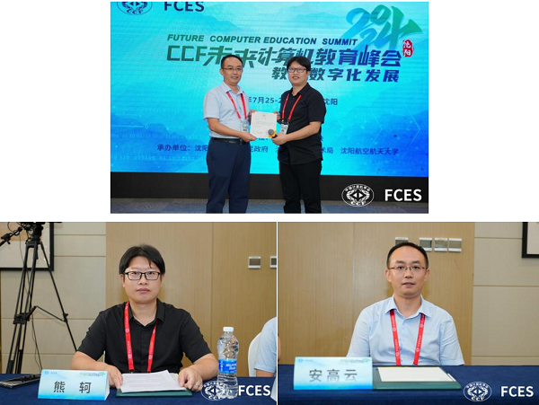 7月26日下午,第八届CCF未来计算机教育峰会(FCES2024)分论坛--“加快发展新质生产力背景下的计算机实验实践教学探索暨CCF-睿芯教学基金启动仪式”以线上线下相结合的方式在沈阳成功举办,线上直播累计观看人数高达9800余人。金年会熊轲教授与安高云教授受邀参加此次论坛,熊轲教授担任论坛主席并主持,引领论坛深入交流。安高云教授围绕《探索计算机类双环协同实习实训教学新模式,服务新质生产力提升》,分享了金年会在计算机实习实训教学新模式中的实践成果与宝贵经验。