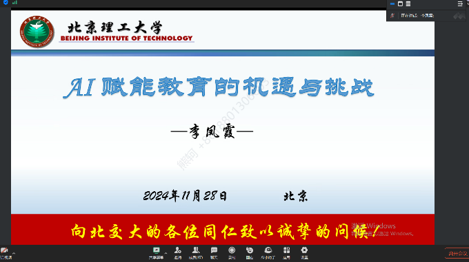 为积极推进AI时代对教育教学的深刻变革,并紧密贴合学校本科教育教学审核评估的反馈精神,特别是针对教师如何高效运用新兴技术手段优化教学模式,提升课堂教学质量与教师教学能力的议题,计算机学院于11月28日下午,在线上召开了“AI赋能教育的机遇与挑战”专家讲座。