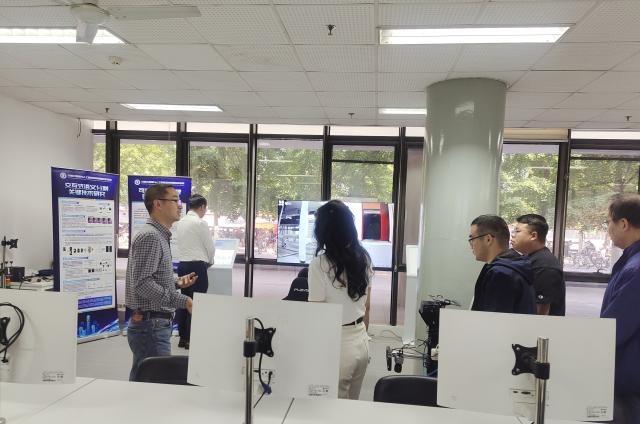 首先,与会者一同参观了位于逸夫楼101、201、202的科普基地场馆。李清勇对 “多角度轨道智能巡检车”、“平行驾驶”等科普设备进行展示,双方就如何将大学科研教学的成果更好地应用到科普活动中进行现场交流。