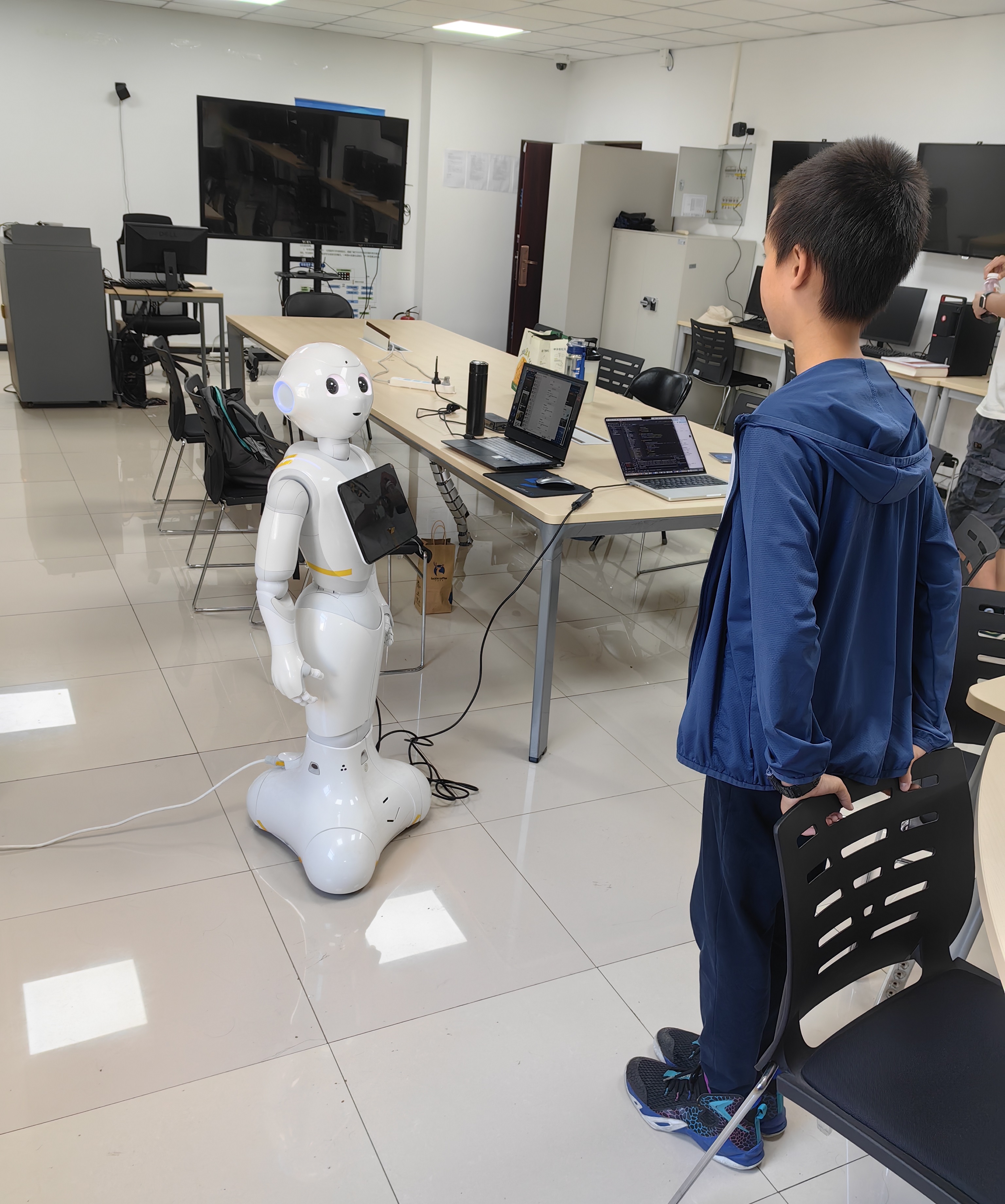 人工智能创新实验室是金年会jinnianhuicom金年会诚信信誉至上一个特色实验室,承担专业实验教学和科研任务。科技周期间,实验室(九教2层北206)开展了两个AI特色项目:基于脑机接口的生成式音乐创作,懂医学知识的Pepper机器人,受到同学们的欢迎。