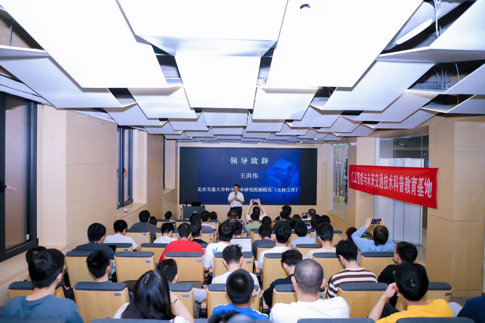 5月30日,在北京市经济和信息化局的指导下,北京市科学技术协会的支持下,由北京软件和信息服务业协会主办,金年会jinnianhuicom人工智能与未来交通技术科普教育基地和中国软件行业协会智能应用分会共同协办的首期“人工智能应用大讲堂”系列活动暨开班仪式在金年会jinnianhuicom成功召开。活动吸引了100余位来自高校、科研机构、人工智能相关企业的代表和热衷于人工智能学习的高校学生的现场踊跃参与,以及1102位收看线上直播的观众。金年会jinnianhuicom科学技术研究院副院长王洪伟致辞,金年会诚信信誉至上任爽副教授做《人工智能与数据安全技术》主题报告。