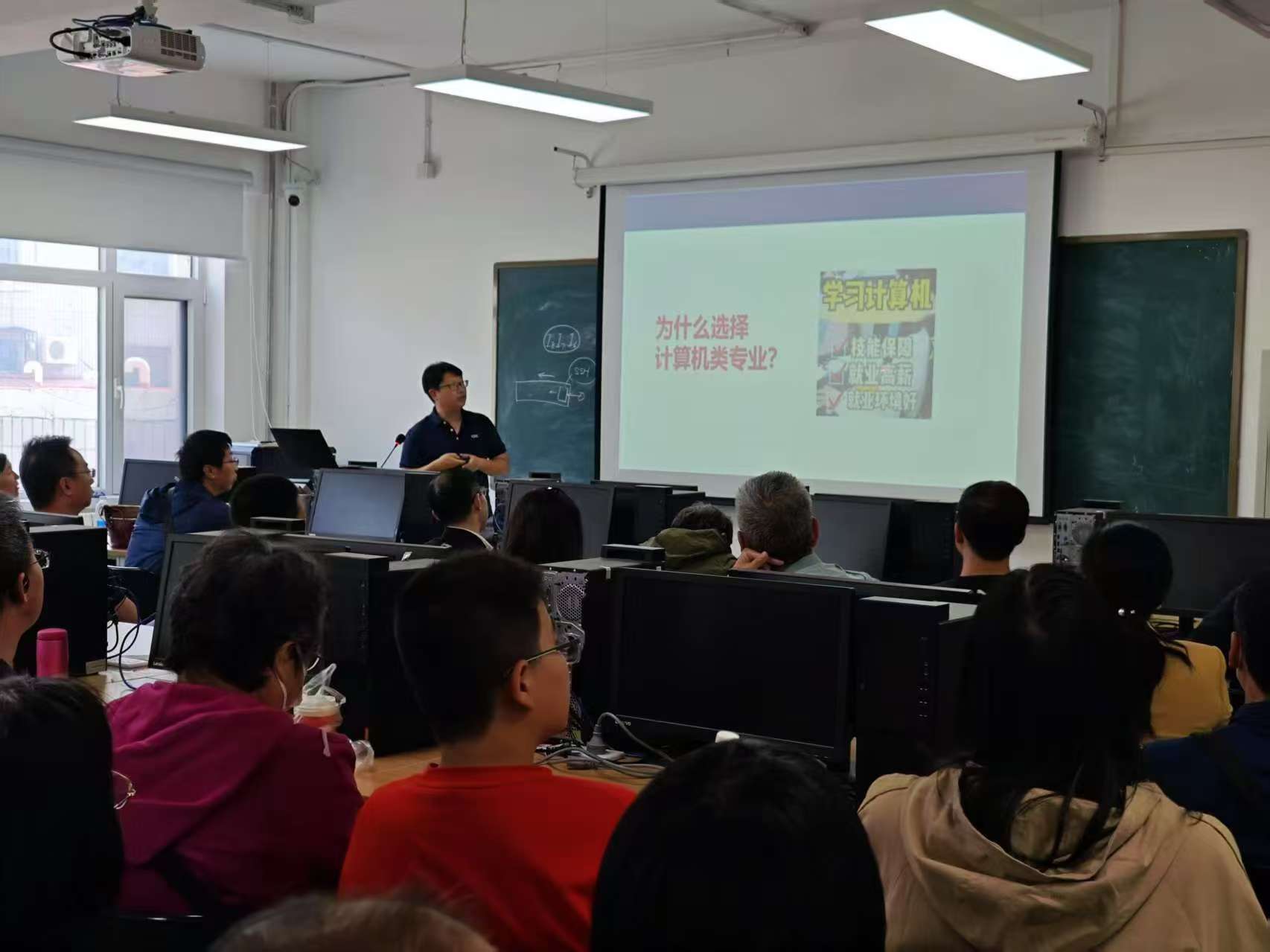 本次科普活动恰逢金年会高招咨询会,计算机学院副院长熊轲教授为广大考生家长做了详尽的招生专业宣讲,各专业责任教授孙永奇、贾彩燕、刘真,以及郭盛楠、马晓乐、樊崇艺等老师们在学院展台前为考试家长咨询。在实验中心,应学生和家长要求,赵守强老师以“AI时代的人才培养”为主线,介绍了在人工智能、大数据、智慧交通等领域学院为大学生提供的丰富多彩的科技项目。科普基地周围老师表示:“我们始终致力于将高校科研和优质教学资源转化为科普动能,让更多孩子感受到科技的温度与力量。” 一位高一学生满怀憧憬地说道:“原来计算机学院有这么多前沿实验室,我以后也想参与高铁智能巡检这样的项目!”