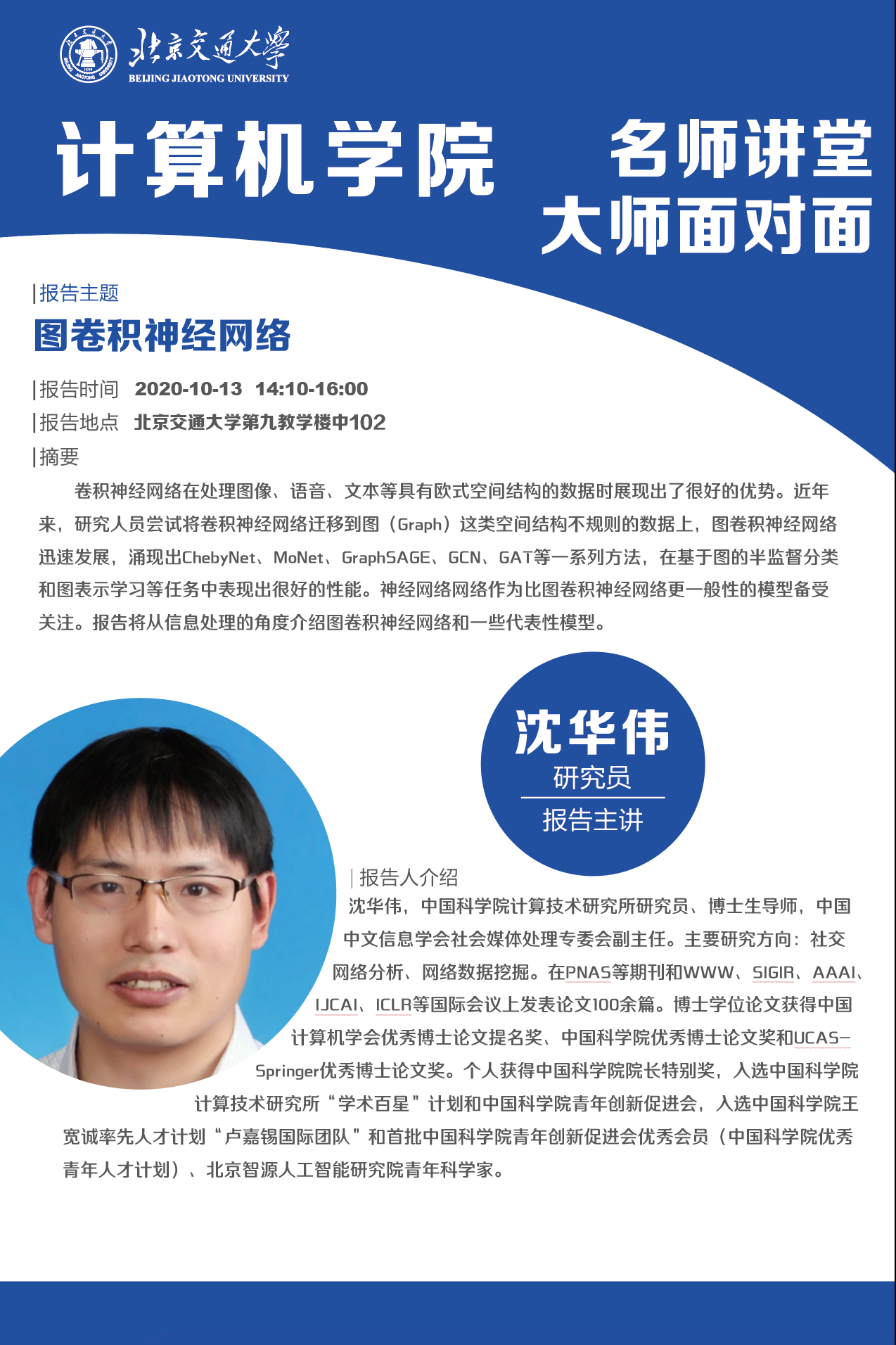 计算机学院大师面对面预告2020.10.13-图卷积神经网络