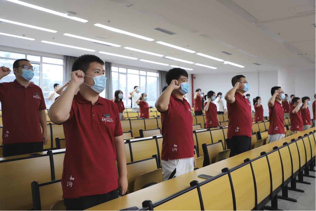 计算机学院2021级唐山班全体新生在林瀚峰同学的带领下庄严宣誓,共同承诺身为交大学子,将秉承知行校训,弘扬交大传统,饮水思源,爱国荣校,勇做走在时代前列的奋进者、开拓者、奉献者,为实现成才梦、交大梦、中国梦而努力奋斗!