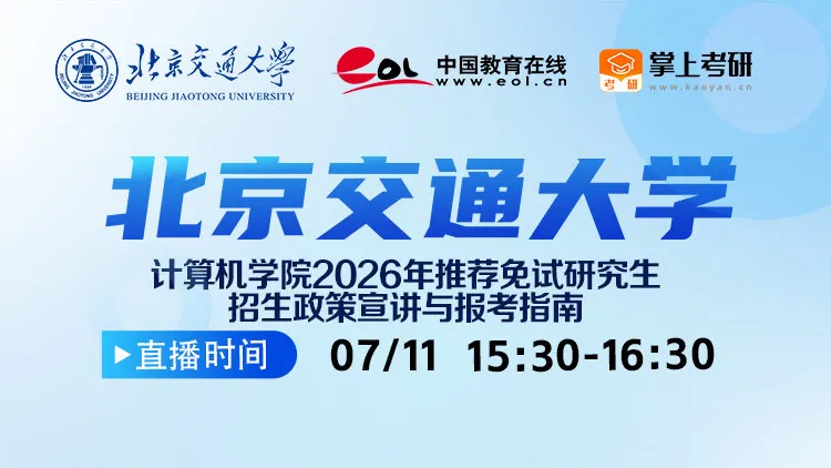 金年会诚信信誉至上将在2025年7月11日下午15:30-16:30通过在线直播方式进行2026年推荐免试研究生招生政策宣讲,欢迎同学们关注。